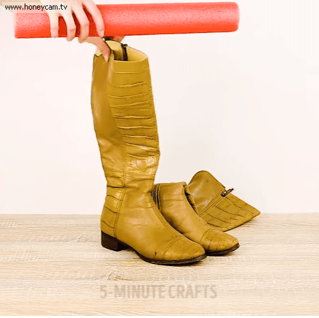 如果是长筒靴子,需要在靴子内用卫生纸筒或者保鲜膜筒把靴子筒撑起来,或者悬挂放置,才不容易变形,比较挺括。