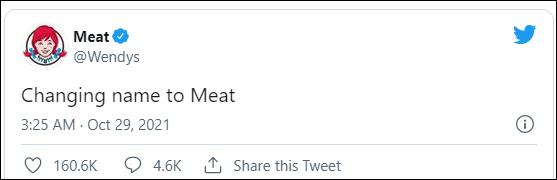 快餐连锁店Wendy ‘s在推特上将他们的名字改为“肉(Meat)”