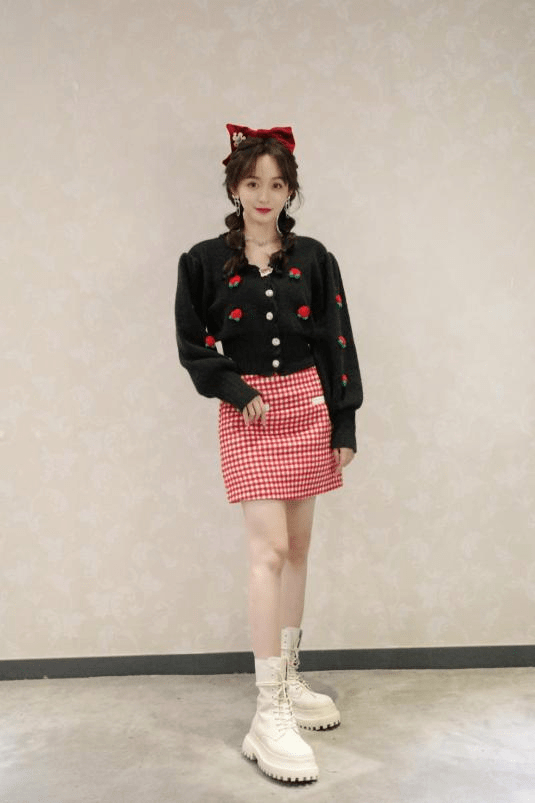 袁姗姗、唐艺昕穿着红蜻蜓马丁靴
