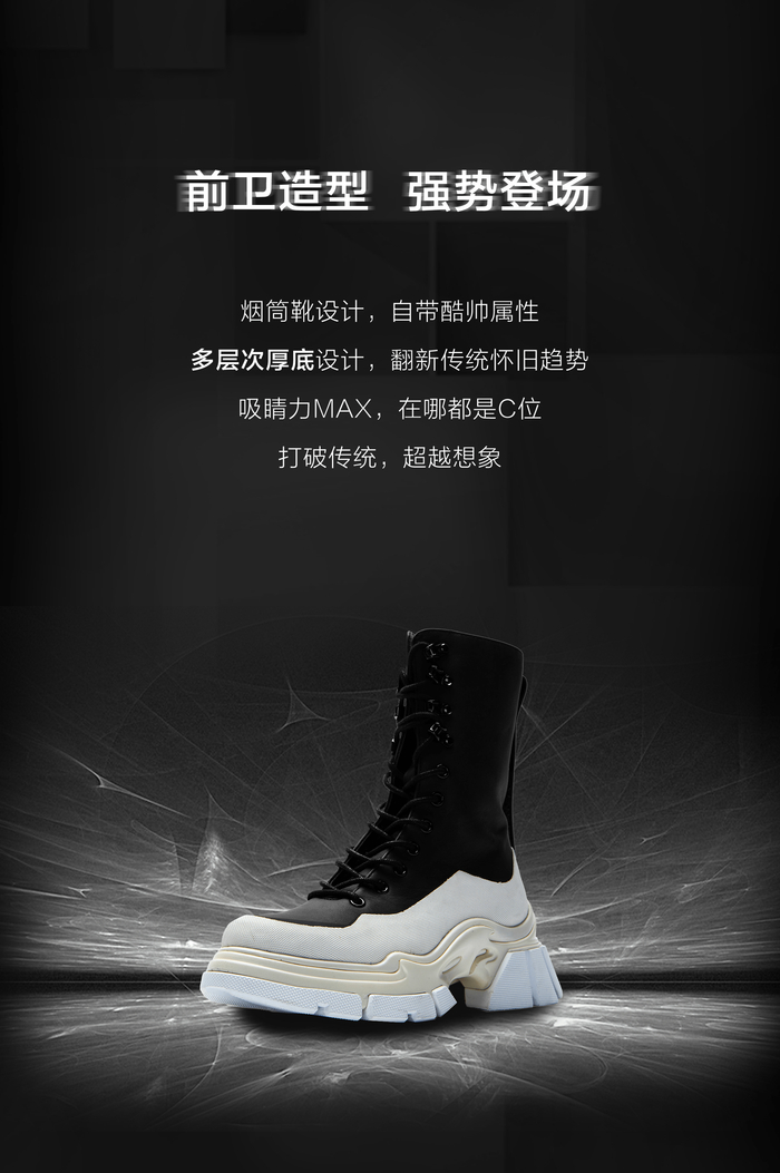 靴子作为本季必备款型,其中马丁靴气场和颜值兼具,鞋型可以很好地衬托出小腿的纤细,修饰身材。多密度科技运动大底,自带酷帅属性,翻新传统怀旧趋势。
