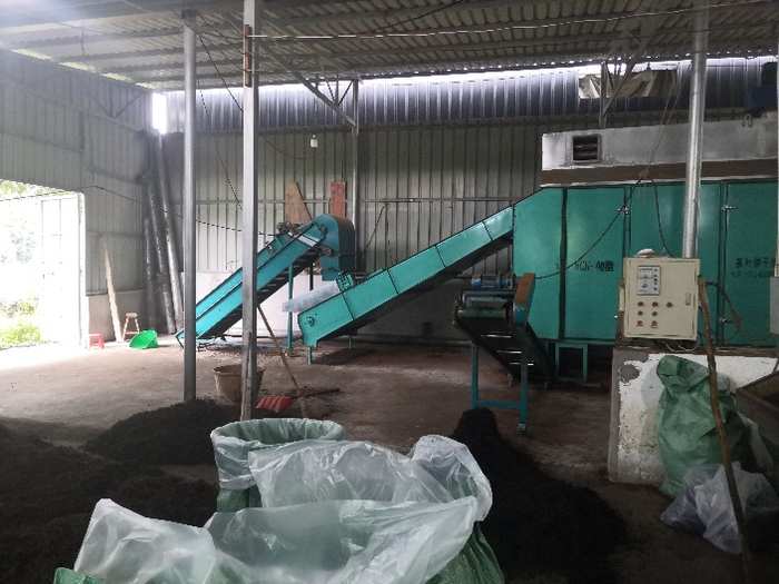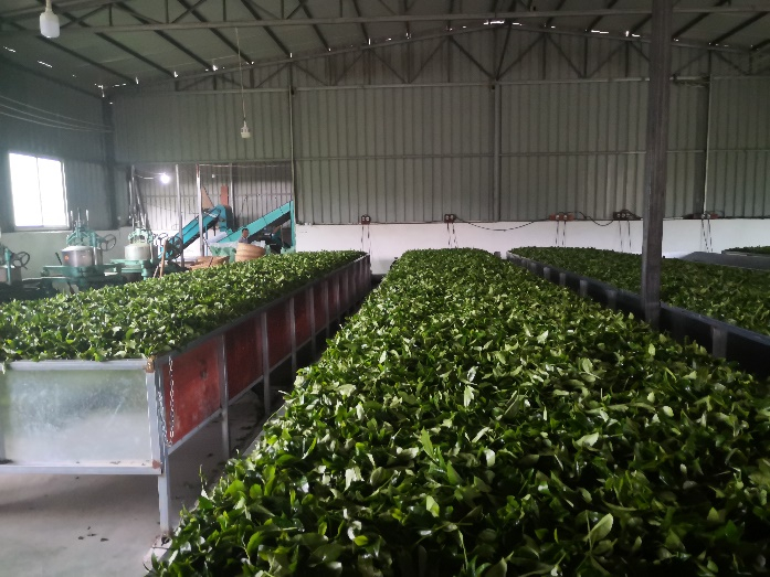 图 6 霍童镇周边村落一座小型茶叶加工厂里,正在进行初次烘干的新鲜茶叶(2021年5月29日张巧坭摄于霍童镇)