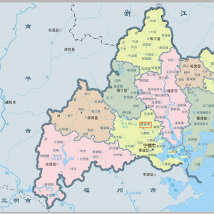 图 1 宁德市行政区划图。霍童镇位于宁德市中心城区西北方向(图片来源于网络:http://www.onegreen.net/maps/html/63471.html)