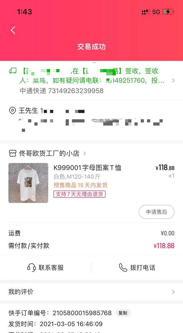 该知情人透露,据他所知,该服装店没有线下门店,仅在快手平台销售,且销量很好。
