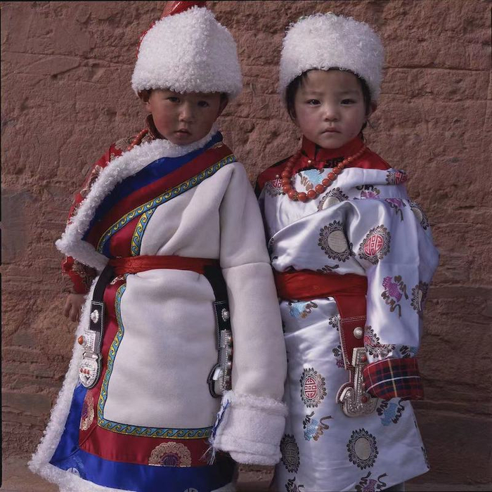 如果没有疫情,我们就会以最经济、最简便的方式来拍摄。比如去年我没有拍到冰天雪地工作的农民,我今年特别希望可以补拍。今年大年初一我出发去甘南补拍到了冬天穿着皮袄的藏民。而且正好我们农历春节和藏历春节在一起,拍到了他们穿着平时看不到的新年盛装。 甘肃省甘南藏族自治州夏河县拉卜楞寺前儿童