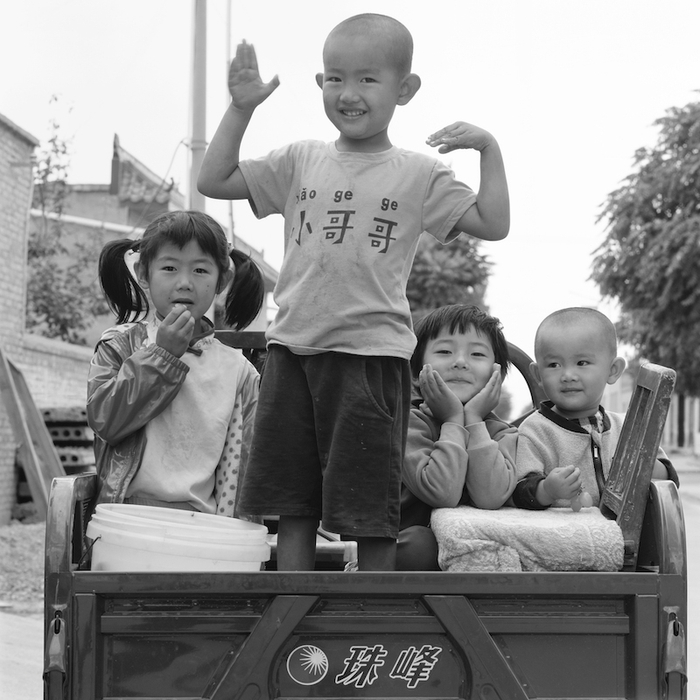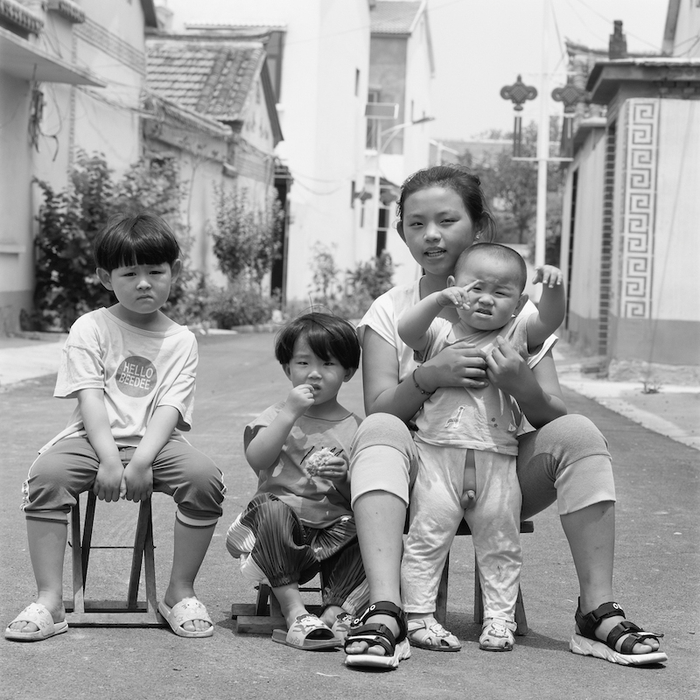 开始就遇难题。2020年大年三十晚上和陈馆长商讨好,大年初一我就从北京高铁直奔我老家——山东烟台,我想从最熟悉的环境和人物开始拍,但我刚支起机器、装上胶卷,请想拍的人镜头前时,就听到后面传来一个年轻女孩的声音:“都什么时候了,你们怎么还拍照片呀?”我想我必须要赶紧拍,不然项目肯定会受影响。因为那会疫情已经暴发了,但没有预料会这么迅速影响到我们每一个人的生活。我暂时没有理会后面的声音,但被摄者已经不是之前那个状态了。我后来才知道,女孩就是被摄者的孙女,我在农村生活时她还没有出生。 山东菏泽郓城县后彭庄村的儿童