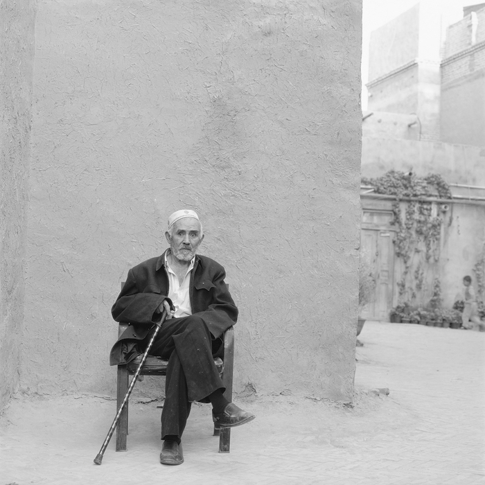 一开始受长期以来审美影响,摄影与绘画、文字是不同的。摄影有“决定性瞬间”的提法。自然场景也会有真实感,提升审美上的丰富和可信性。我也看过很多这样的摄影作品,比如早期拍摄农民收获、田间地头的摄影作品,或者国外的美术作品中的农民形象。我一开始也有着这个创作思路,也拍过几位这样的场景。但因为我不是特别喜欢拍纪实,或者抓拍(比如马克·吕布、布列松),我离不开三脚架。我的构图要极为精准,人物的状态是我想要的,焦点要极好,整个的作品要完美,这是我的创作习惯。其实每一位摄影师每一次按下快门都是一次平面设计,设计要很讲究,画面中的点、线、面都要为这张人物肖像服务。所以我拍人物时候选择背景的原因就是为塑造人物起烘托、衬托的作用,如果可有可无,都删除。 新疆维吾尔自治区喀什地区喀什市喀什古城农民