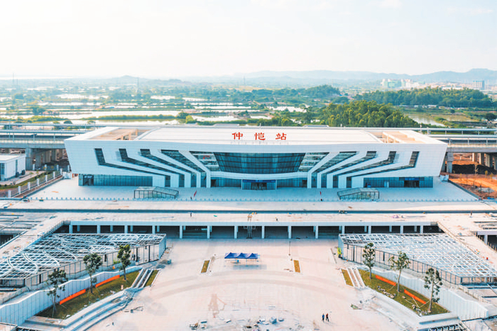 背靠潼湖湿地的仲恺站,建筑面积8000平方米,为2台4线车站设计。站台规模虽不大,但却是地理上距深圳、广州、东莞等周边经济大市最近的站点,因此备受关注。赣深高铁和广汕铁路正按计划建设仲恺联络线。仲恺站北端也因此预留了道岔接口,待广汕铁路2023年通车运营后,在仲恺站可以实现赣深高铁和广汕铁路无缝衔接。