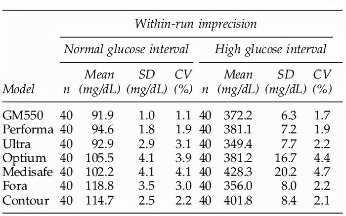 日前,一篇名为《7款自我血糖监测系统的准确度和精密度评估》的科研论文,对市面上常见的7款自我血糖监测系统,进行了准确度和重复性的性能评估,结果显示不同品牌的血糖仪准确度相差很大,其中仅有包含华广瑞特GM550在内的三款血糖仪能符合ISO 15197:2003准确度规范要求。
