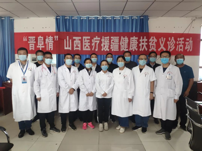 马红青(前排右一)参加“晋阜情”山西医疗援疆健康扶贫义诊活动