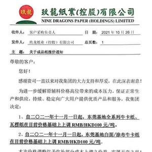 10月以来,晨鸣纸业、玖龙纸业、华泰纸业、岳阳纸业等多家纸企纷纷发布涨价函,其中玖龙纸业一天连发6份涨价函备受市场关注。
