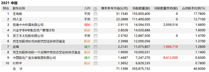 2021年二季度和2021年三季度,金鹰分别减持了199.67万股和172.54万股永太科技股票。假设金莺是在解套后开始减持的,那么粗略计算的话,金莺分别套现了3494.23万元和6901.6万元。