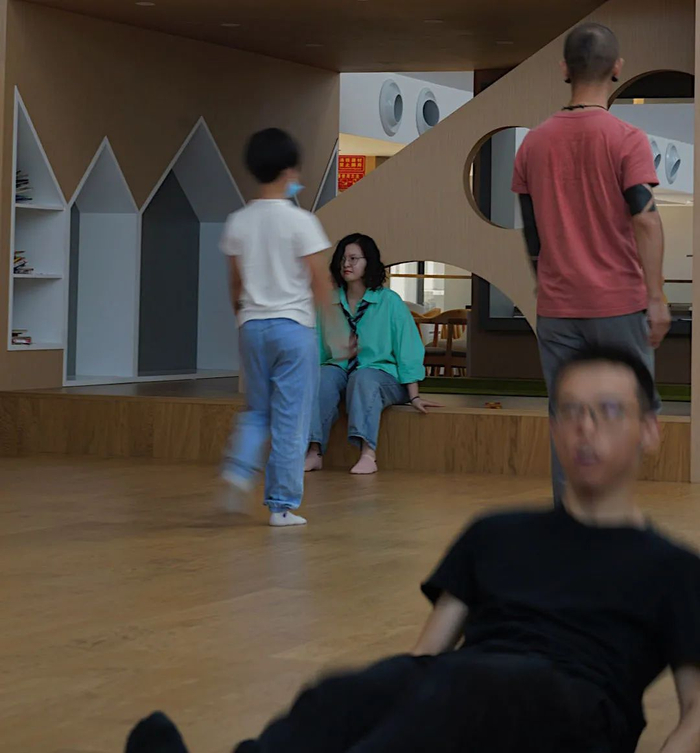 “10月3日上午,我参加了由子涵老师带来的身体运动的工作坊活动。一开始,他带领我们调节呼吸,做拉伸等放松活动。后来,老师让我们找一个伙伴对视,我找了陈然姐姐,可是被“调皮”的石冰哥哥给阻拦了……最后我们十几个人共同完成了一个即兴表演,大家都感到心旷神怡。希望我下次还参加这样别具一格,有意义的活动。”