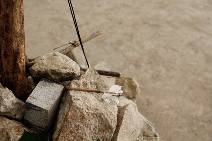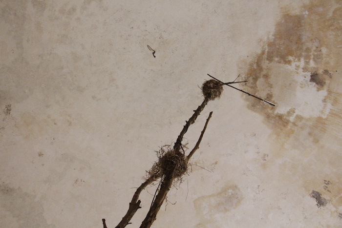 与符永鑫相似,艺术家刘帅也着迷于“追踪”,只是他追踪的对象是——练市的白鹭。在4号筒仓中,他用白鹭羽毛、骨骼、蚕丝、树枝、枯树,创作了作品《练市潮汐》。