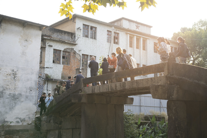 鲍学铭是练市镇本地人,此次作为“去田野计划”的本地向导,带领从外地赶来的参观者们走访练市的老街、古桥和茧站。