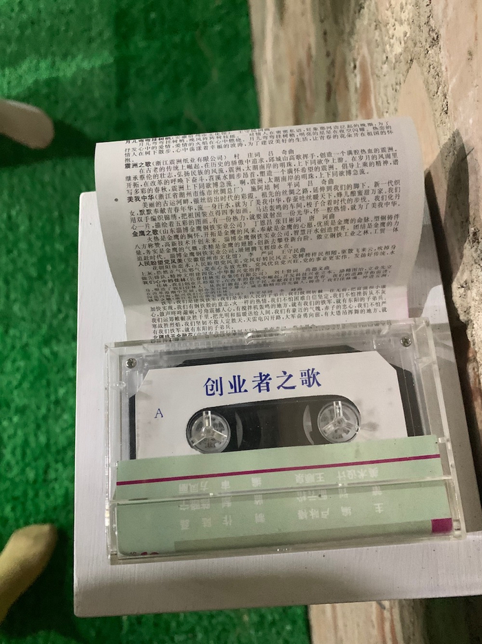 上世纪八十年代,练市丝绸总厂曾辉煌一时。这盘《创业者之歌》的磁带就收录了当时全国许多模范企业的自创歌曲,其中就有练市丝绸总厂创作的《美我中华》,当时的练市丝绸总厂厂长施阿培是歌词创作者之一。