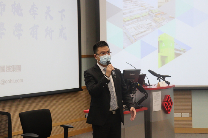 中建国际医疗产业发展有限公司总经理张毅,在香港理工大学张安德演讲厅报告。(澎湃新闻记者 彭玉洁 图