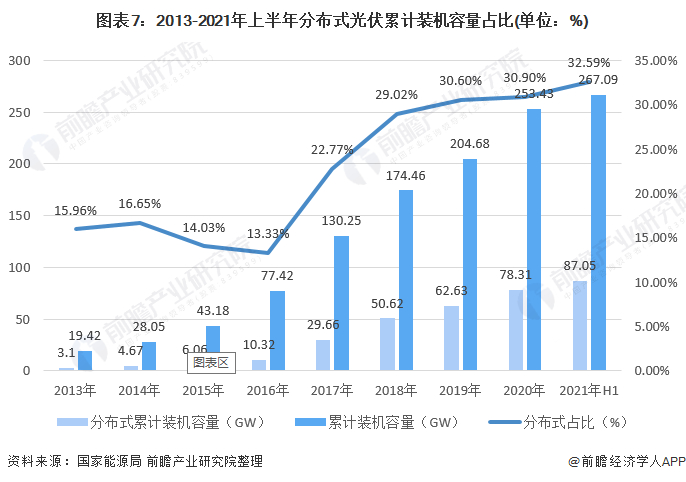 2、光伏新增装机容量:2021年上半年同比增长12.93%