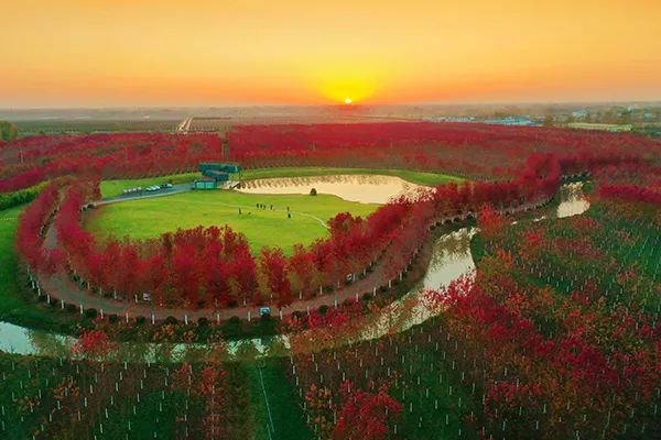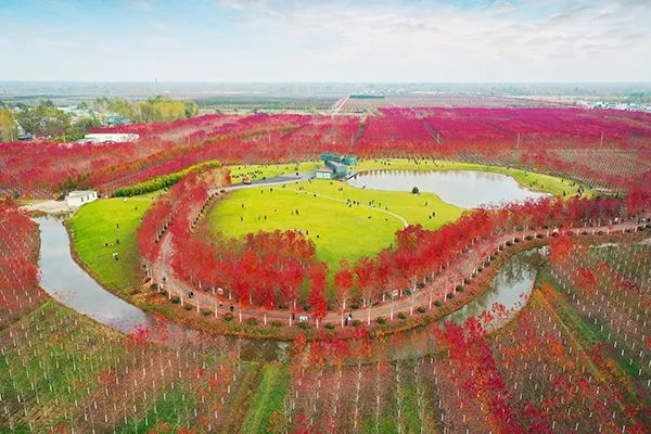 徐州红枫公园占地面积1万亩。以种植彩色树种为主,植物繁茂、空气清新、环境优美,是城市天然氧吧。深秋时节,60余万株枫树被红色覆盖,色彩缤纷的田园风光吸引众多游人看叶赏景,领略“树”造多彩世界,“叶”摹田园风情美景。