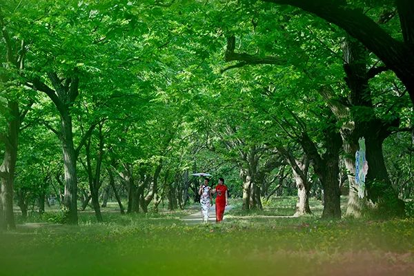 姚庄银杏时光隧道位于万顷林海之中,长3.5公里。道路两旁银杏树木成荫、枝叶相交,形成一条四季独特的“时光隧道”景观。深秋枝叶繁茂,金黄灿烂。园内像这样的森林绿道共有50余条,总长150多公里,是游客放松身心的好去处。