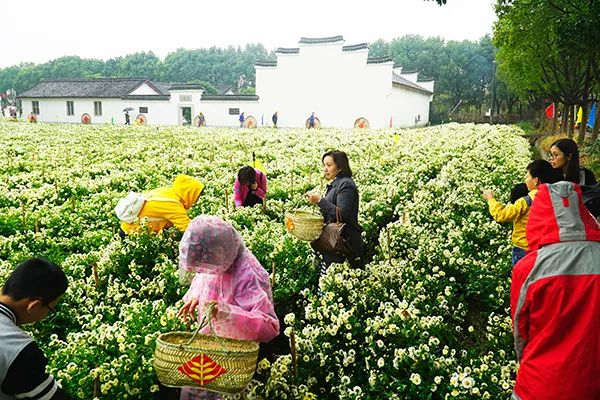 缘缘菊海位于桐乡市石门镇白马塘村,是杭白菊标准化生产示范基地,是目前桐乡市杭白菊规模化种植面积最大、持续时间最久、基础设施相对完整的现代农业示范性基地之一。周边树木成林、荫荫葱葱。