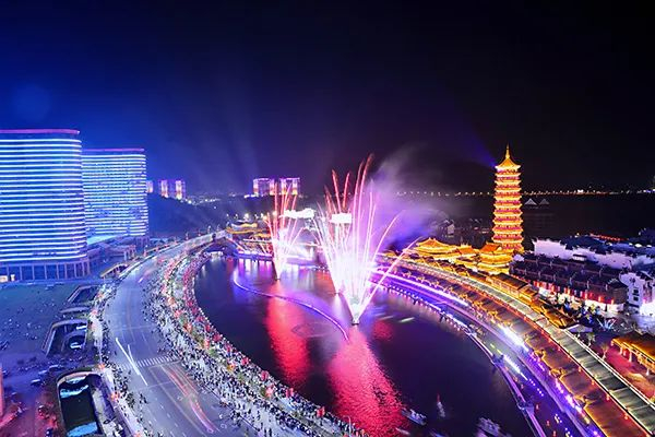 太湖古镇是太湖龙之梦乐园的一部分,白墙黑瓦,古色古香,宛如画卷。古镇总建筑面积约66万平方米,打造了总长度9千米的老街。当前,太湖古镇打造了10个大剧场和10个小剧场,集非遗展示、购物、街艺表演等功能于一体。