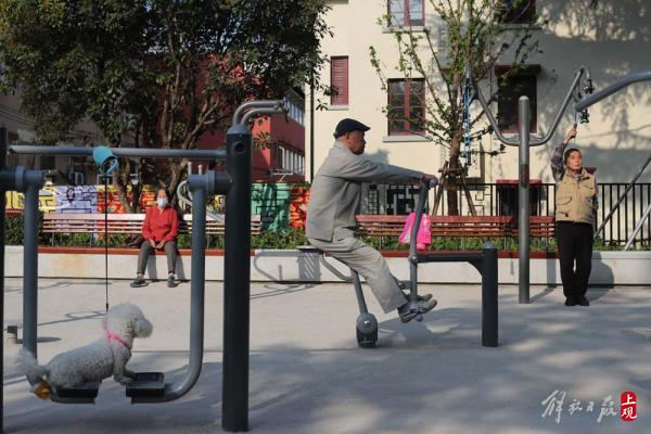 居民在曹杨环浜公园晨练,丰富的植被,还有“水下森林”,宜人的环境居民乐在其中。