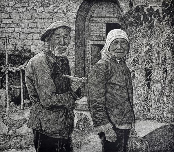 滕雨峰 老两口 套色木刻