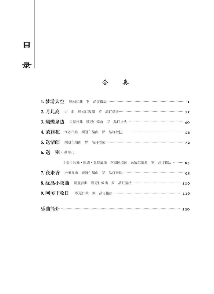 《顾冠仁古筝重奏、合奏曲集》分为重奏、合奏两册,总计23首古筝作品,均附由古筝演奏家罗晶演奏的示范音频。