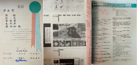1990底,毛大庆、陈兰、李长君、陈松、蔡均如等五位同学的方案获日本《第四届建筑与环境国际设计竞赛》学生奖