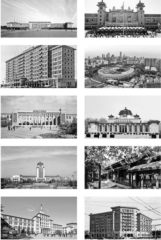 新中国十大建筑:图一人民大会堂、图二北京火车站、图三民族饭店、图四北京工人体育场、图五中国国家博物馆、图六全国农业展览馆、图七民族文化宫、图八钓鱼台国宾馆、图九中国人民革命军事博物馆、图十华侨大厦 ©图片来源网络