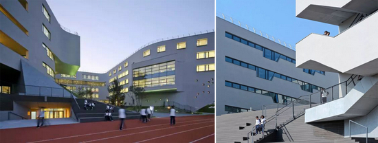 所以,在他们的设计中,连教室的做法都是可以多变的,学校的走廊追跑打闹,同时还有地方可以安静的看书,设计了很多共享的空间,这些理念都非常超前。构思建筑时想象的全是学生在空间里面的感受,思考他们怎么才能以最放松的状态去学习。这个学校刚建成时还担心学校在房山,未来的教学质量或者生源难以保证。但是这些年看见的效果和各种成绩都越来越好,我每年都会收到学生、家长、老师给我发来的感谢信。