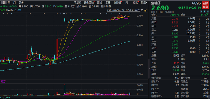 公开资料显示,2015年7月15日,广西金嗓子集团在香港上市(股票代码:06896,股票简称:金嗓子)。2016年7月底,金嗓子股价最高触及8.47港元,市值最高时超过60亿港元,随后公司股价一路下挫,2018年2月份触及0.92港元的历史新低,股价及市值最高缩水近90%。截至目前,金嗓子股价报2.69港元,最新市值为20亿港元。