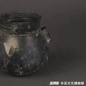 澄湖遗址出土的黑衣陶刻符贯耳罐,吴中博物馆藏