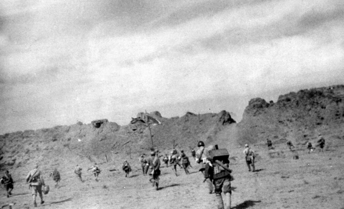 新华社沈阳1949年1月16日电《英雄的十月》,记录了辽沈战役战场战士们“地堡被轰坍了,转到壕沟里打;壕沟被轰平了,跳进弹坑打;子弹打光了用手榴弹打;手榴弹打光了用石头打”。