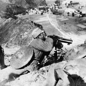 1937年9月25日,中国共产党领导的人民军队取得抗战以来第一个重要胜利——平型关大捷。图为平型关战斗中,一一五师某部的机枪阵地(资料图片)。(新华社发)
