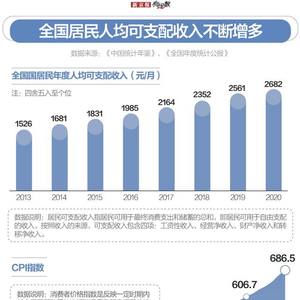 自改革开放初1978年至今的42年间,物价涨至原来的6.9倍,2013-2020年的7年间物价变为原来的1.15倍,相比之下虽物价整体上呈不断上涨趋势,但人均收入的增长幅度略高一些。