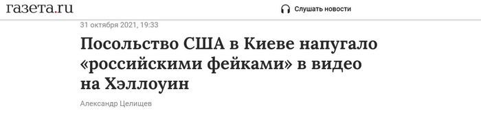 《报纸报》:美国驻基辅大使馆在万圣节视频中通过“俄罗斯虚假信息”吓唬人