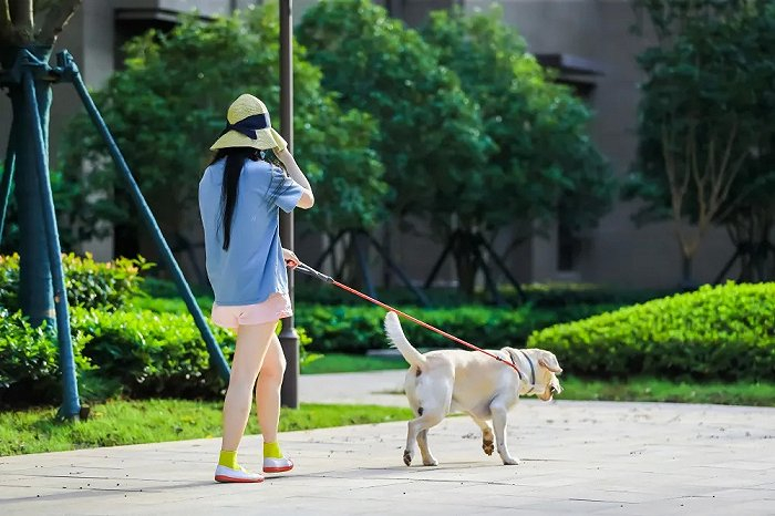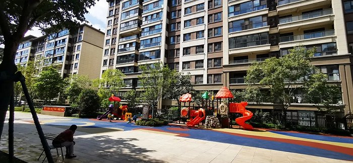 年轻的夫妇推着婴儿车在小区内缓慢踱步,或是跟自己的宠物一起玩耍遛弯。