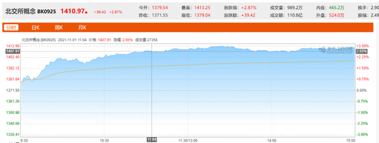 今日北交所概念股大涨。截至11月1日收盘,北交所概念整体涨了2.87%。