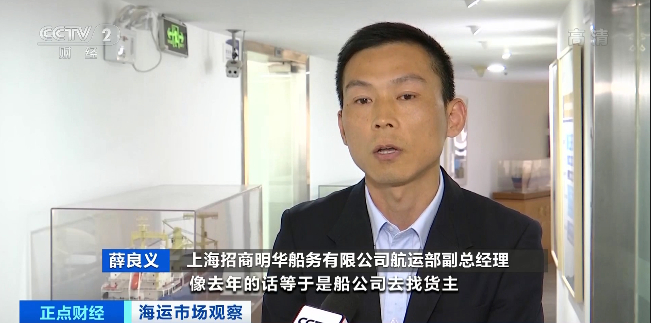 上海招商明华船务有限公司航运部副总经理 薛良义:去年是船公司去找货主,今年是货主的需求比较大,源源不断地去找船公司。像我们目前40多艘船,基本上就所剩无几了。后面货主再问我们找船,基本上是要到11月下旬。