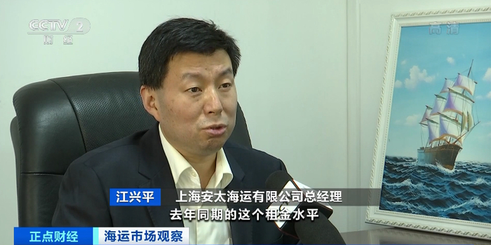 上海安太海运有限公司总经理 江兴平:五万多吨的大灵便型船型,去年同期的租金水平在一万美元左右一天,目前的租金水平要四万五千美元(约合人民币28.8万元)左右一天,所以相当于去年的四倍甚至更多。