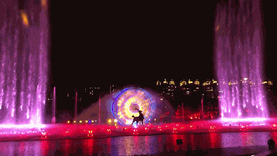 光影秀表演时间:每周二、三、五、六、日晚19:30—20:00