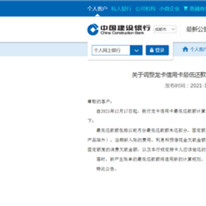 中国建设银行发布重要公告,这种信用卡最低还款额计算规则将调整