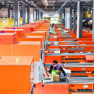 在圆通北方总部基地一期项目圆通华北转运中心(智创园)分拣车间内,全自动分拣线24小时都在高速运转。在进港口,工人们将卡车上的快件一件件放到传送带上,经“五面扫”扫描仪对快件进行扫描后,快递在长达200米的传送带上排成一条长龙,进行二次分拣。