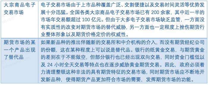 表 我国期货行业替代品的威胁