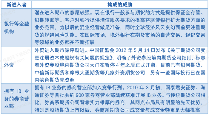 表 我国期货行业新进入者及其所构成的威胁