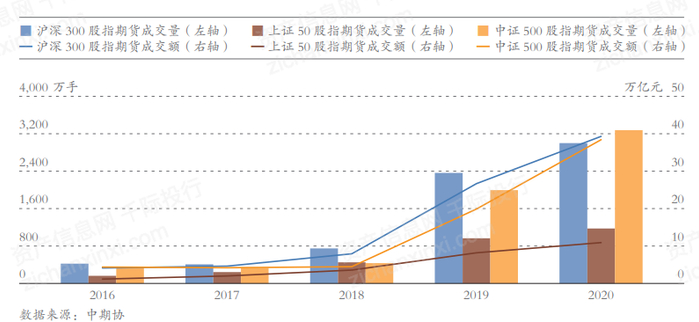 图 2016-2020年股指期货成交量与成交额