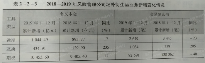 表 2018-2019年风险管理公司场外衍生品业务新增变化情况