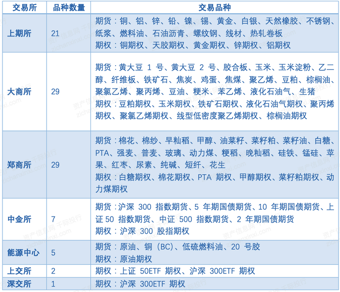 表 期货期权品种数量