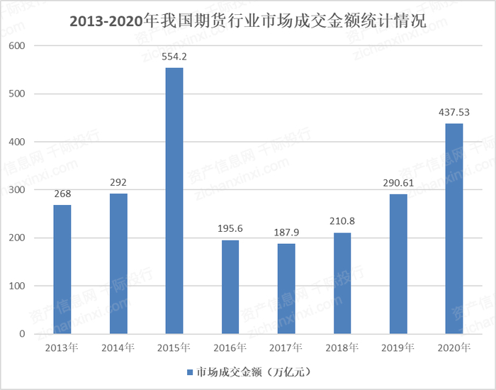 图 2013-2020年我国期货行业市场成交金额统计情况